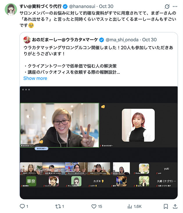 また、SNSでの発信や自己紹介の中で、肩書きの伝え方を工夫することで、実際の仕事につながったという実例も共有されました。