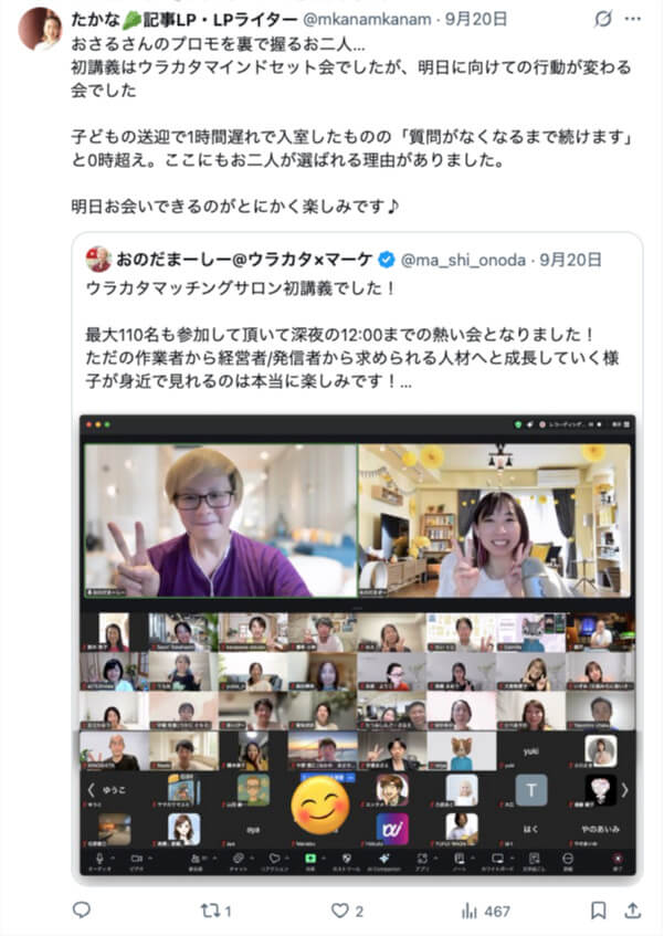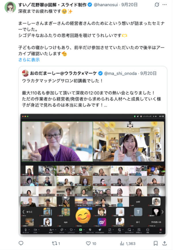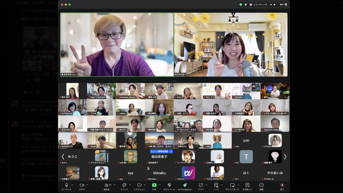 最大110名が参加し、初回とは思えないほど多くのメンバーが画面越しに集結。講義中心のプログラムでしたが、内容の濃さとメッセージの深さに、熱気に包まれた3時間となりました。