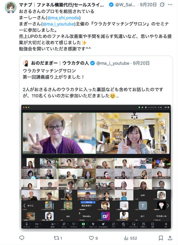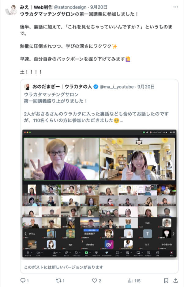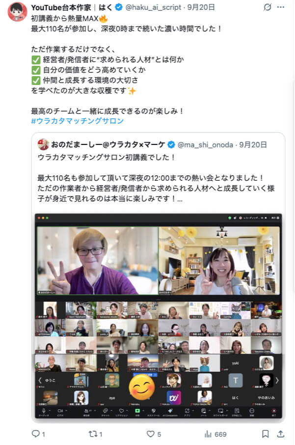 2025年9月19日、ウラカタマッチングサロンの記念すべき第1回イベント「オリエンテーション&特別講義」がオンラインで開催されました。