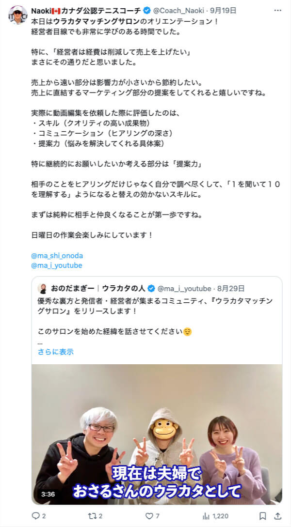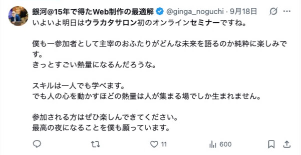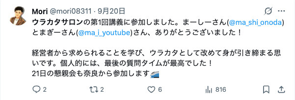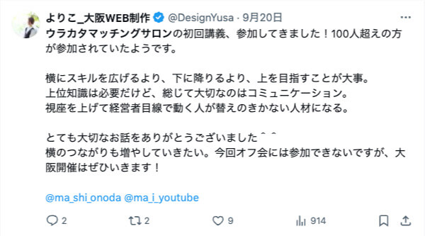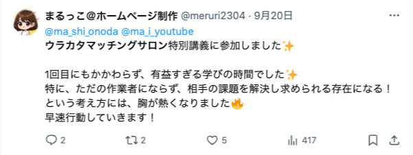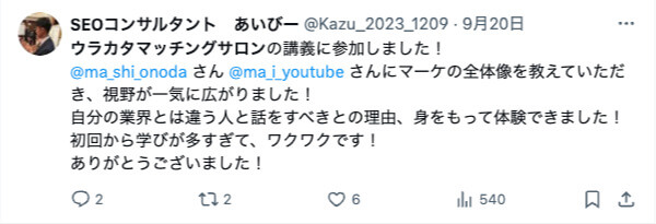 ウラカタとして、クライアントとどう関わり、どう信頼を築くかを改めて考えるきっかけとなる内容でした。