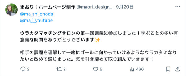 こんにちは。ウラカタマッチングサロン・Webサイトチームのかおりです。